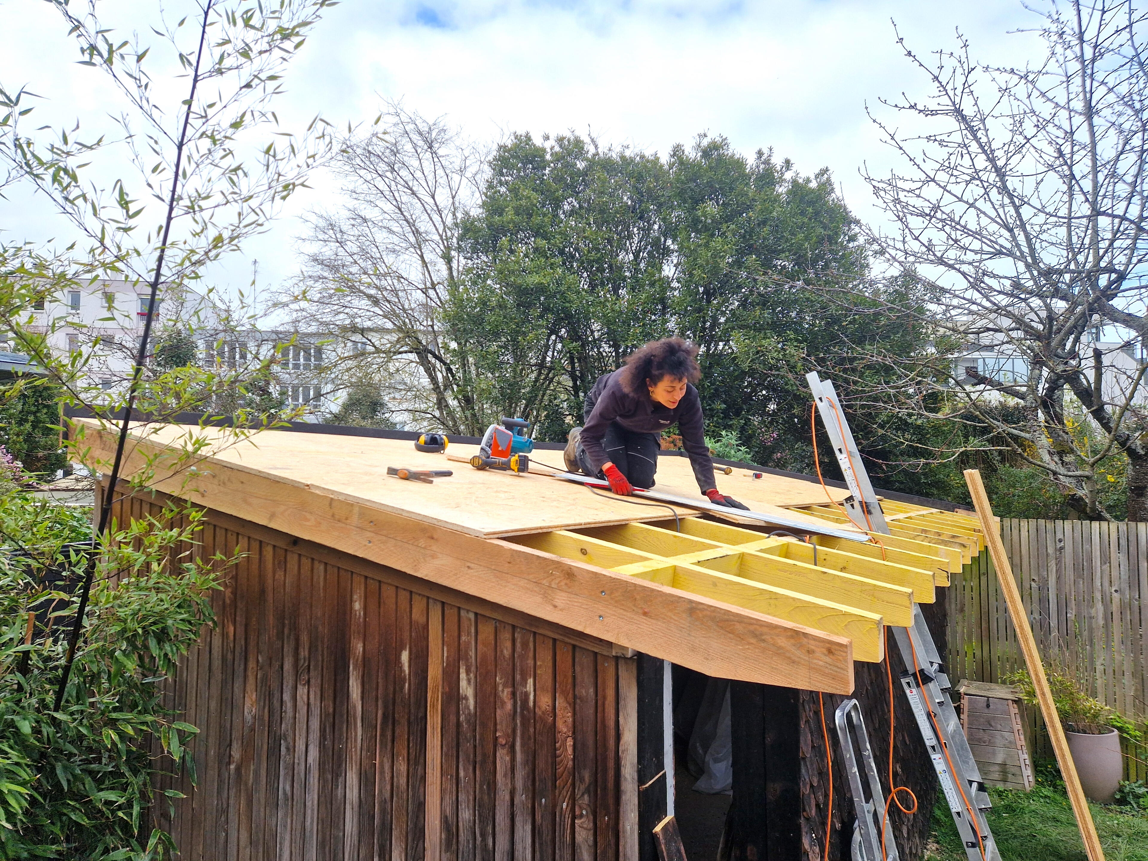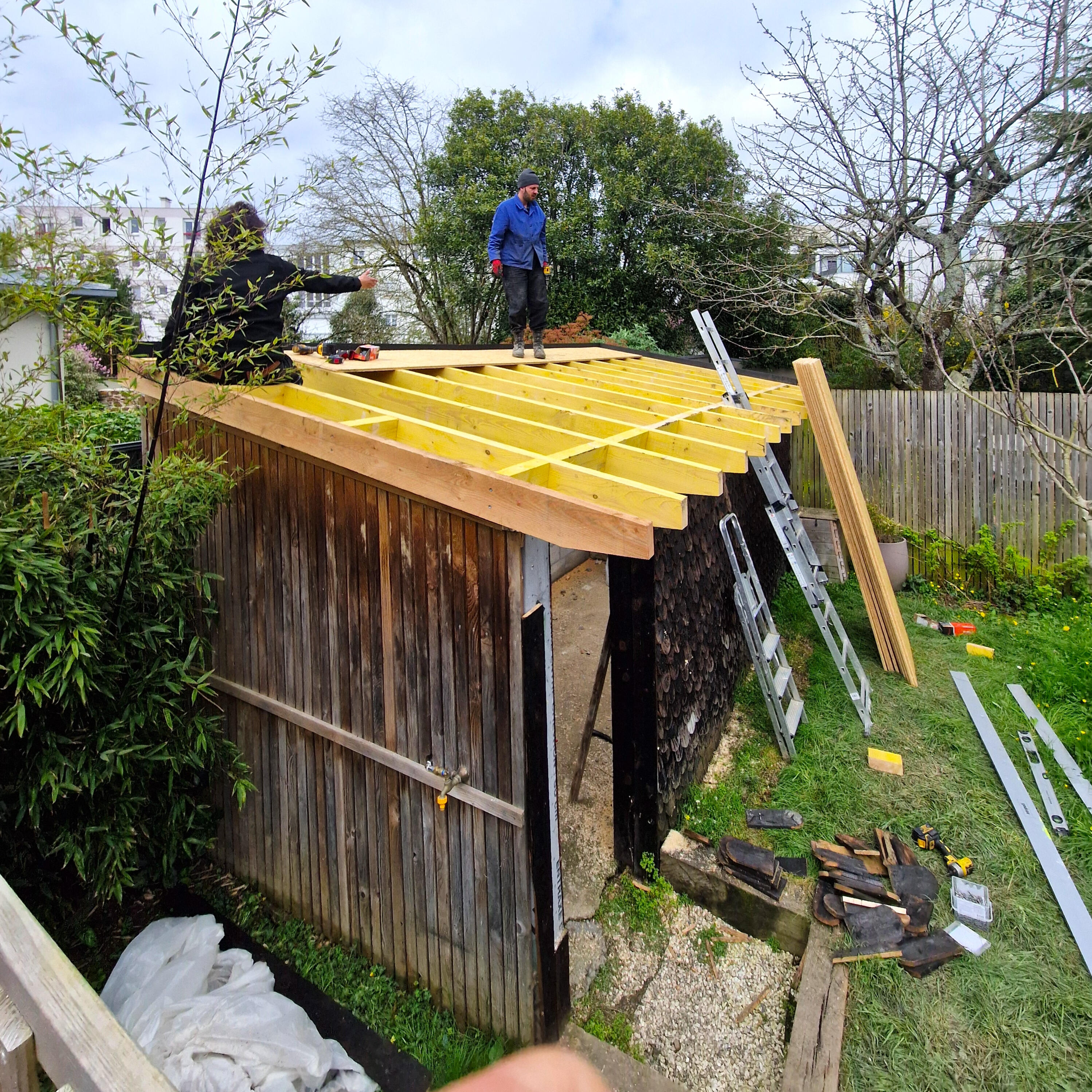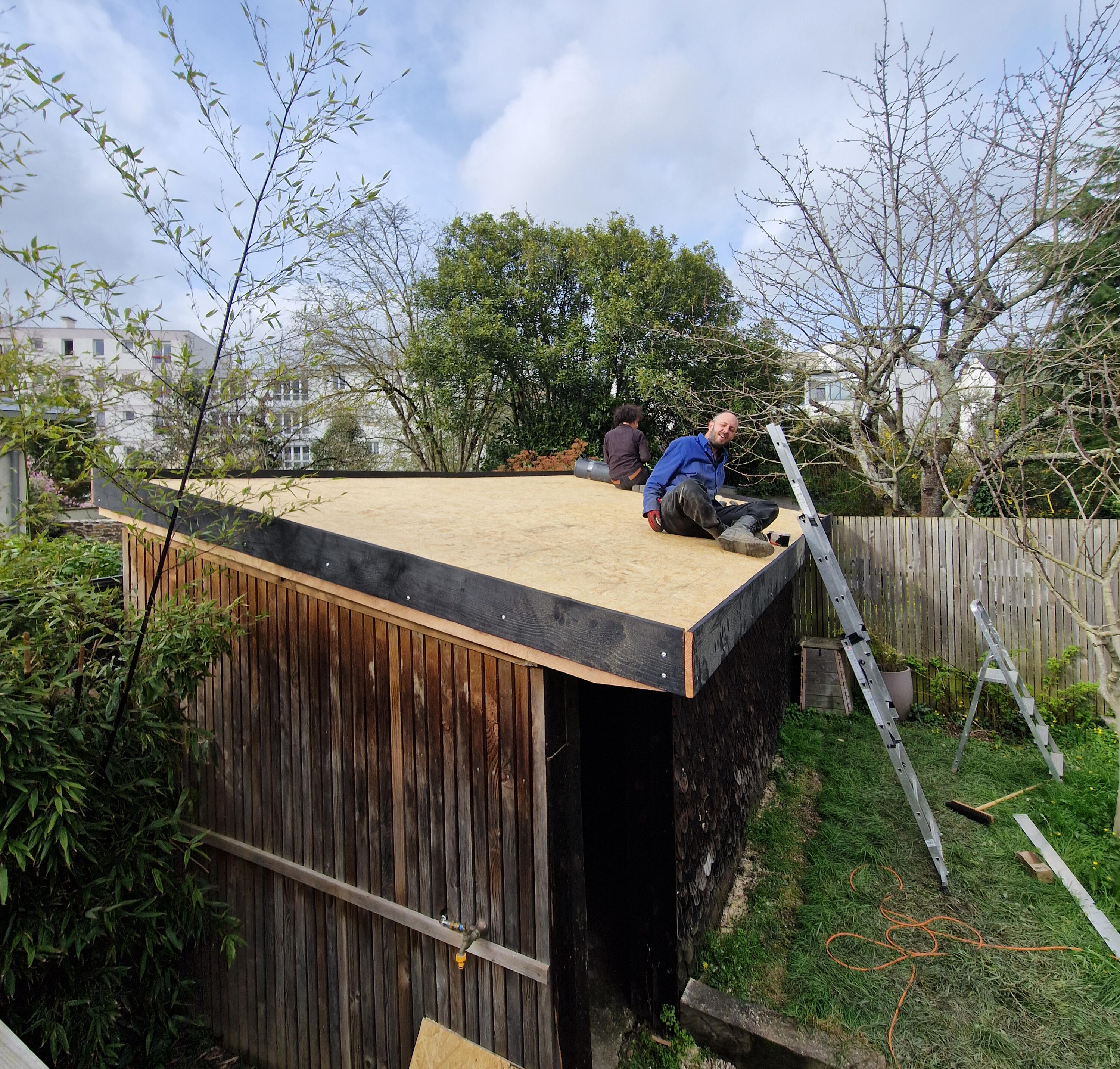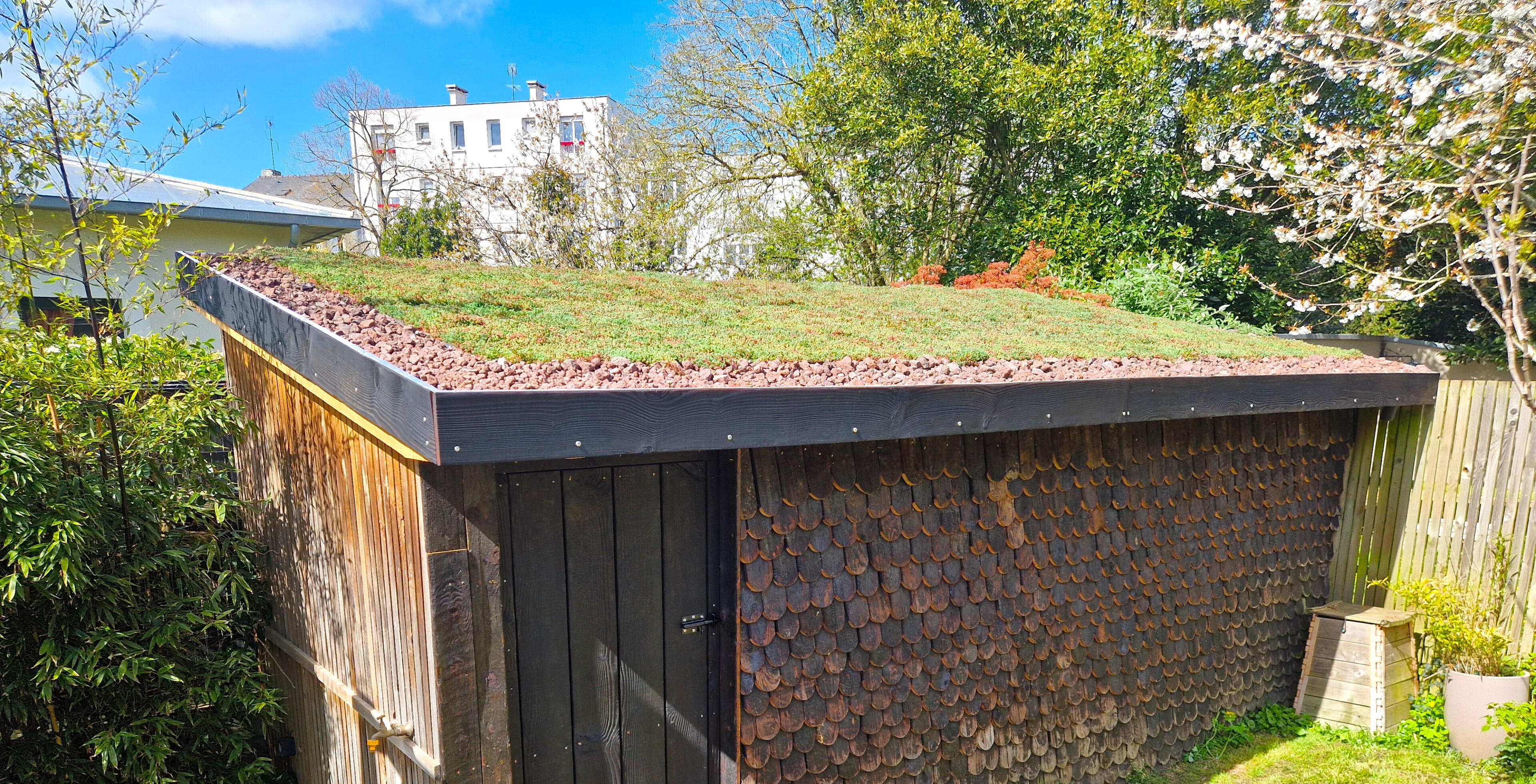 Accompagnement à l'autoconstruction d'une toiture végétalisée sur un abri de jardin