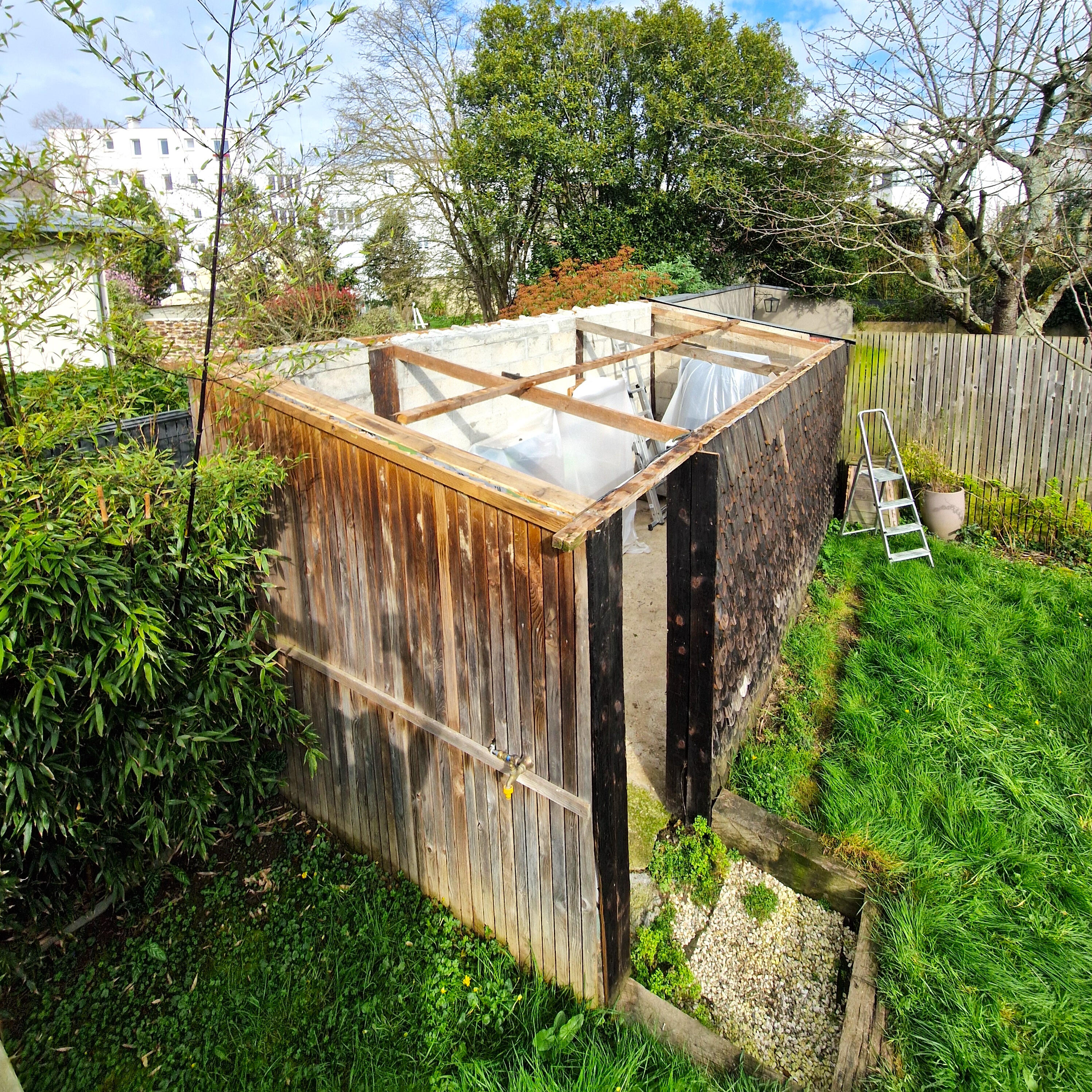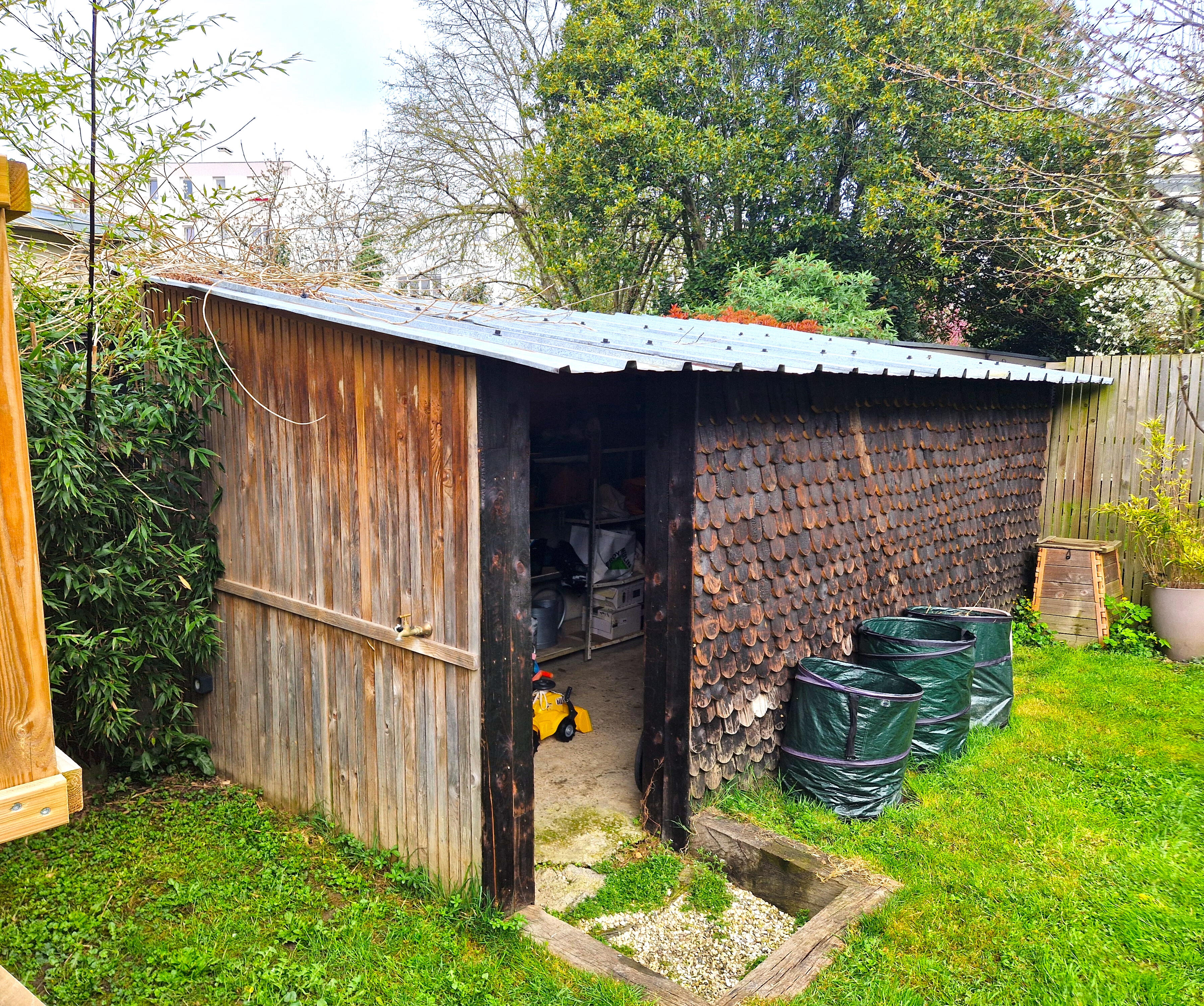 À l’origine, un abri de jardin simple, recouvert d’une tôle marquée par le temps et les intempéries. Une structure fonctionnelle, mais en fin de vie, qui appelait une transformation en profondeur.