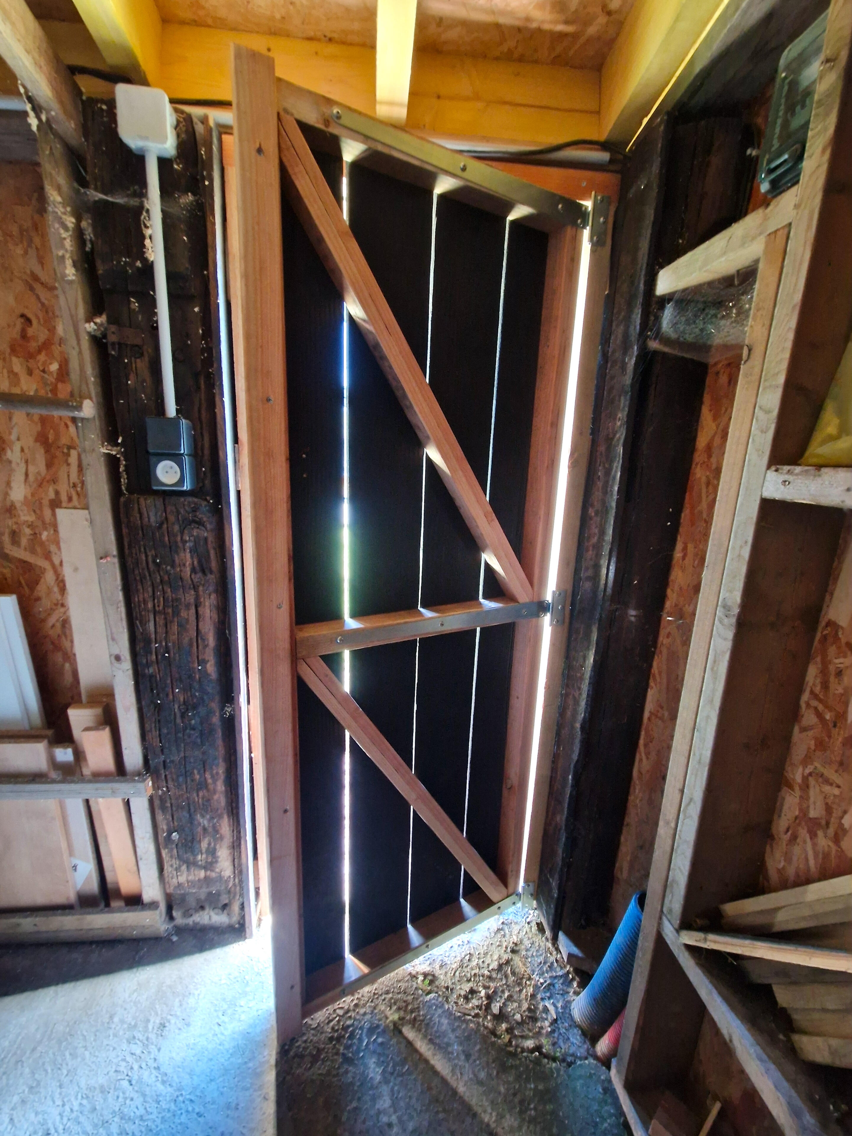 UNE PORTE À L'IMAGE DE L'ABRIEn complément, nous avons également conçu et réalisé une porte destinée à fermer le local. Pensée dans la continuité de l’intervention, elle se veut à la fois simple dans son dessin et robuste dans sa mise en œuvre.