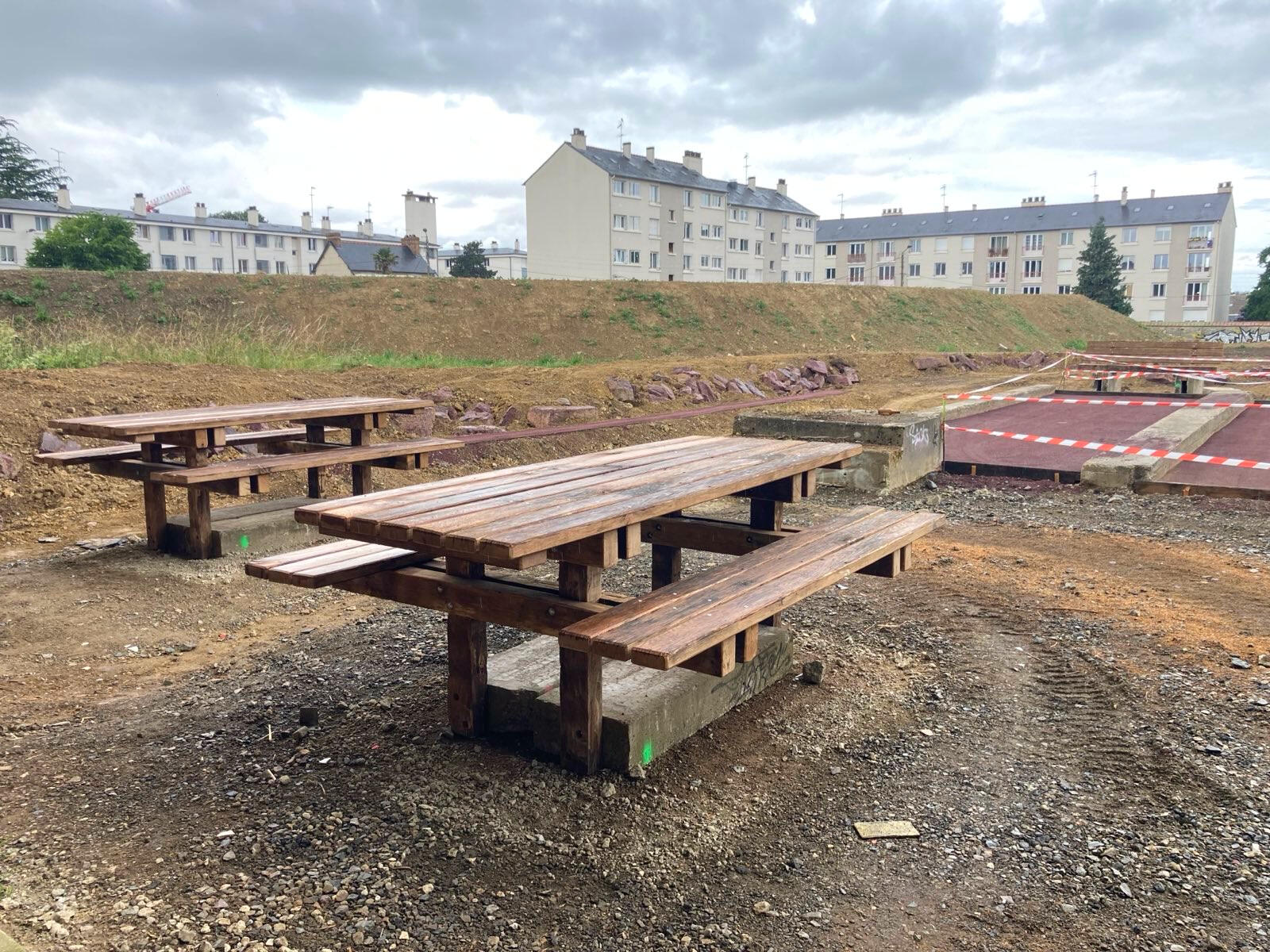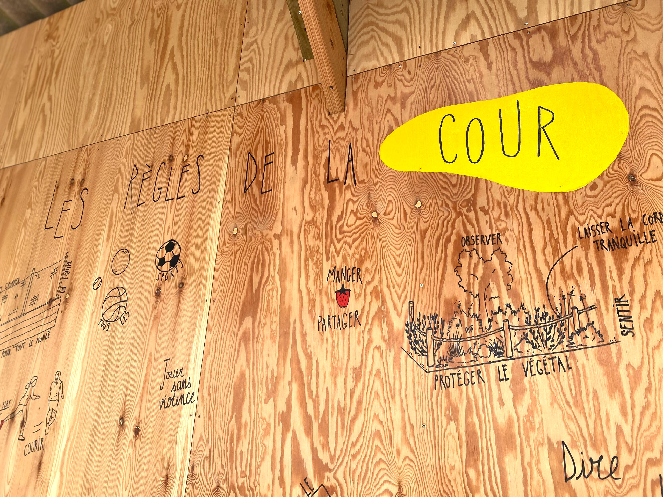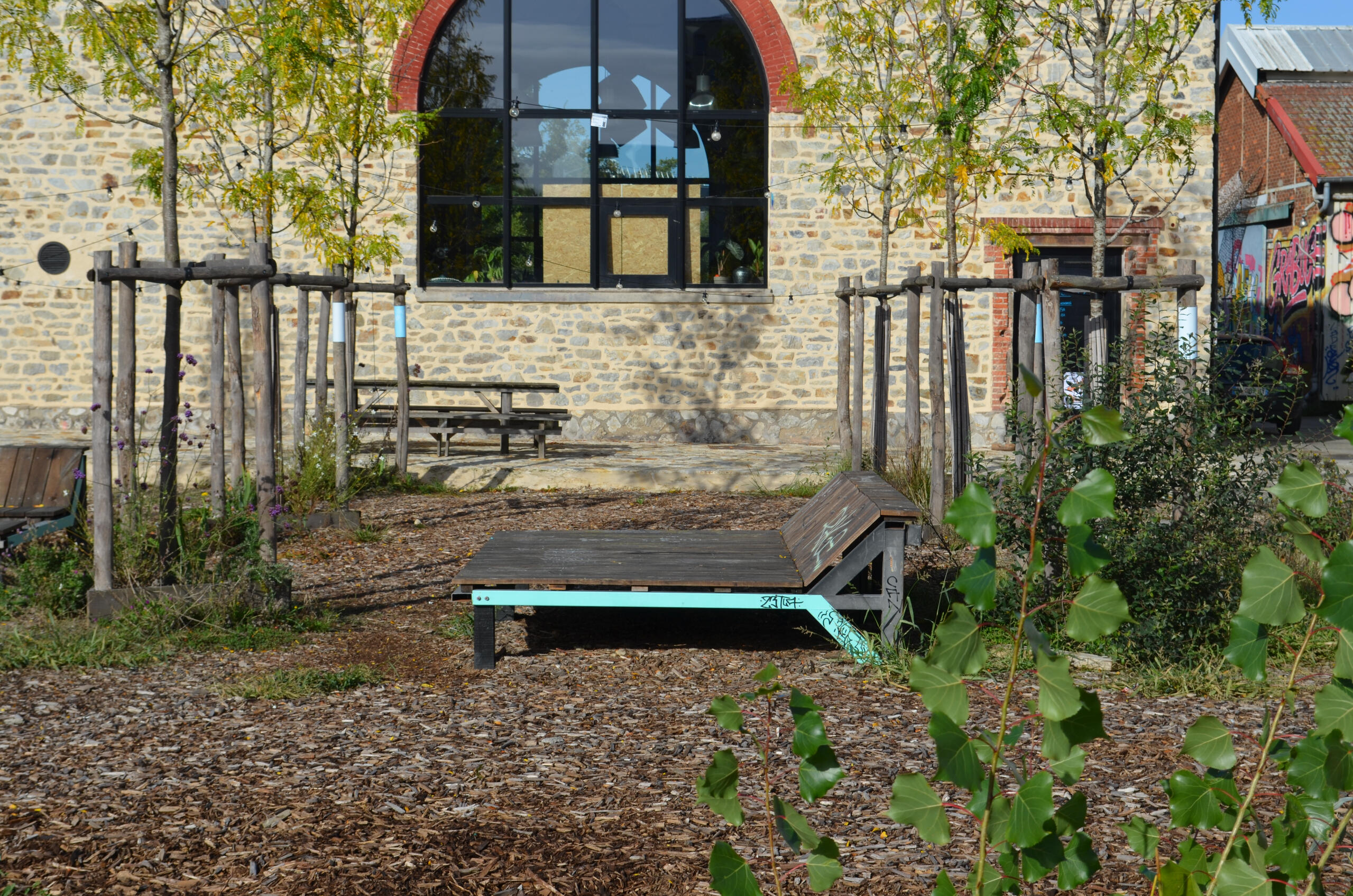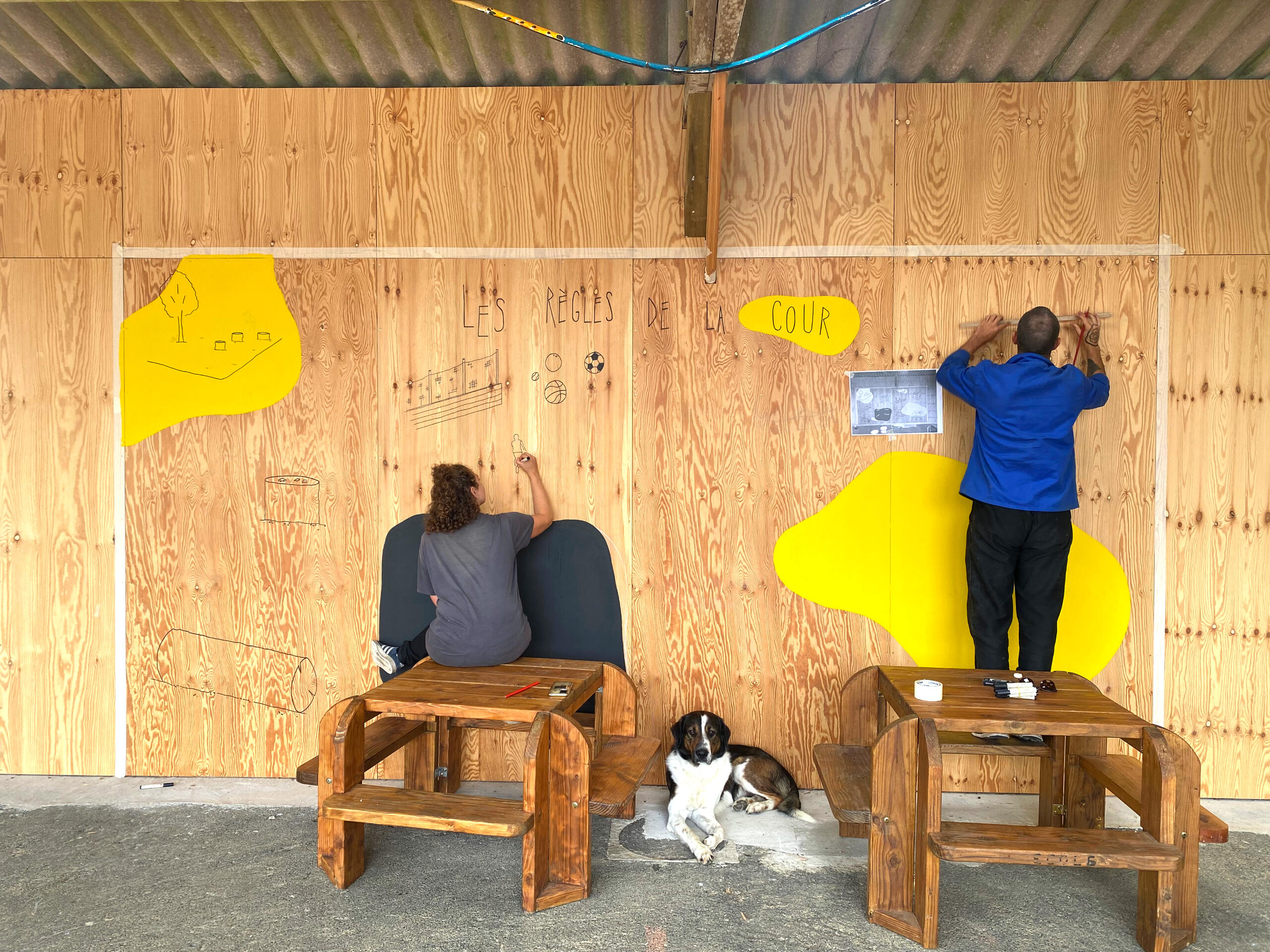 Ces aménagements ont été réalisés à l’occasion de cinq chantiers ouverts, entre décembre 2020 et juin 2021, en collaboration avec les services de la ville, les habitant.e.s et les associations de la ville.Fresque réalisée en collaboration avec l'artiste Valérian Henry.
