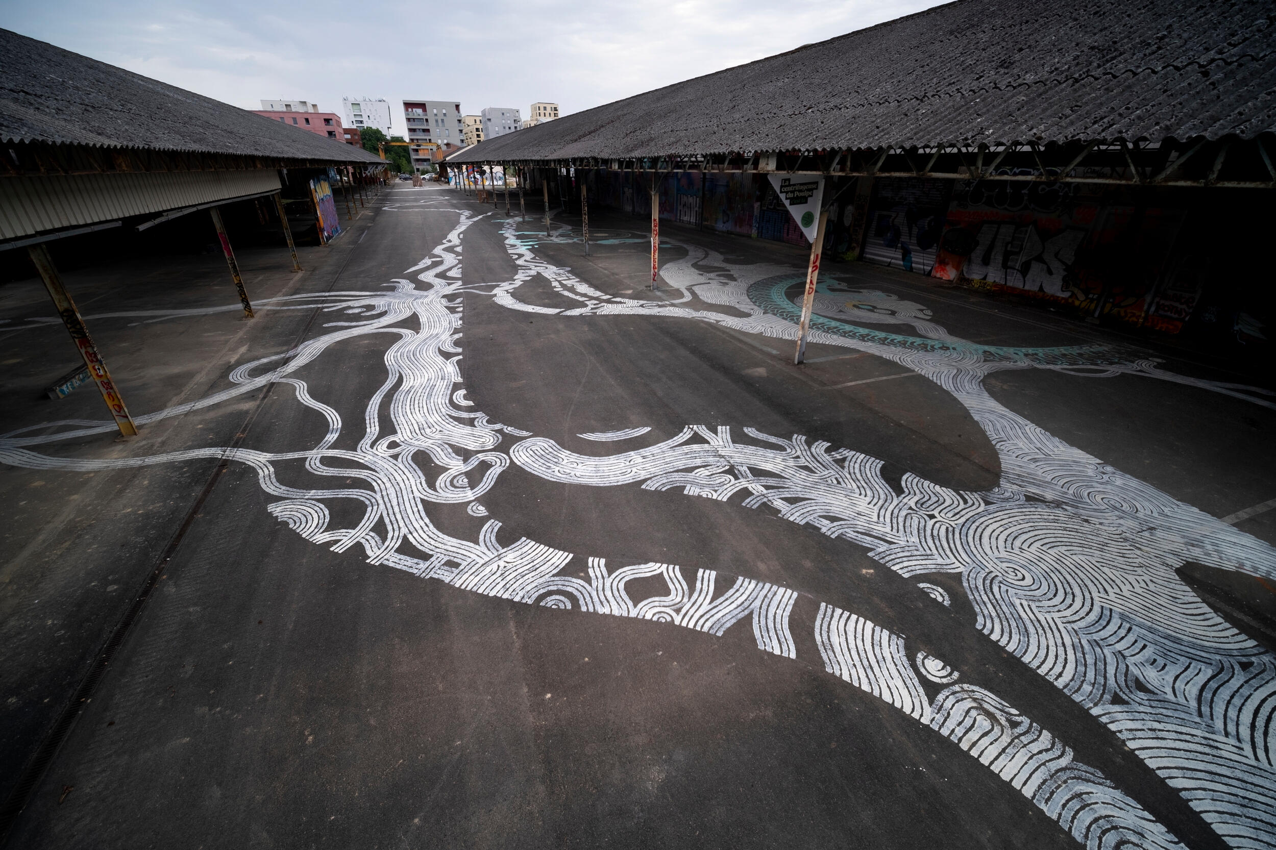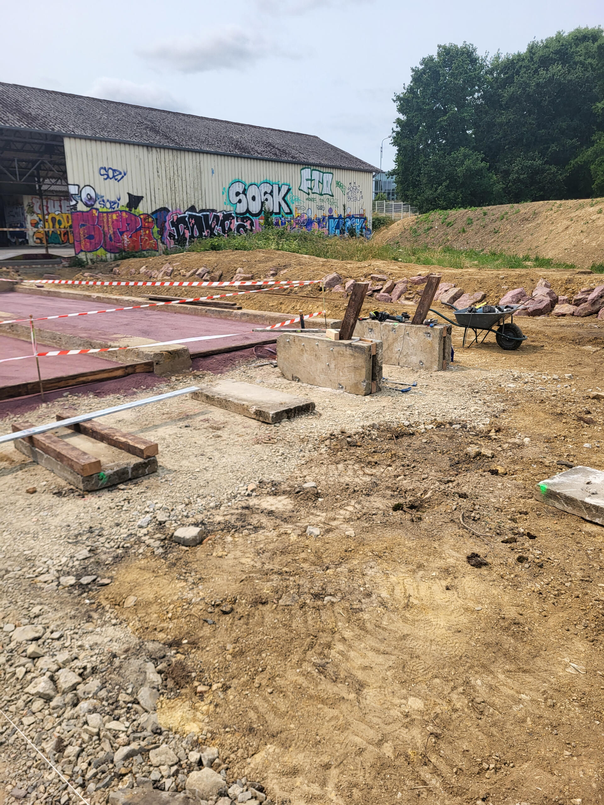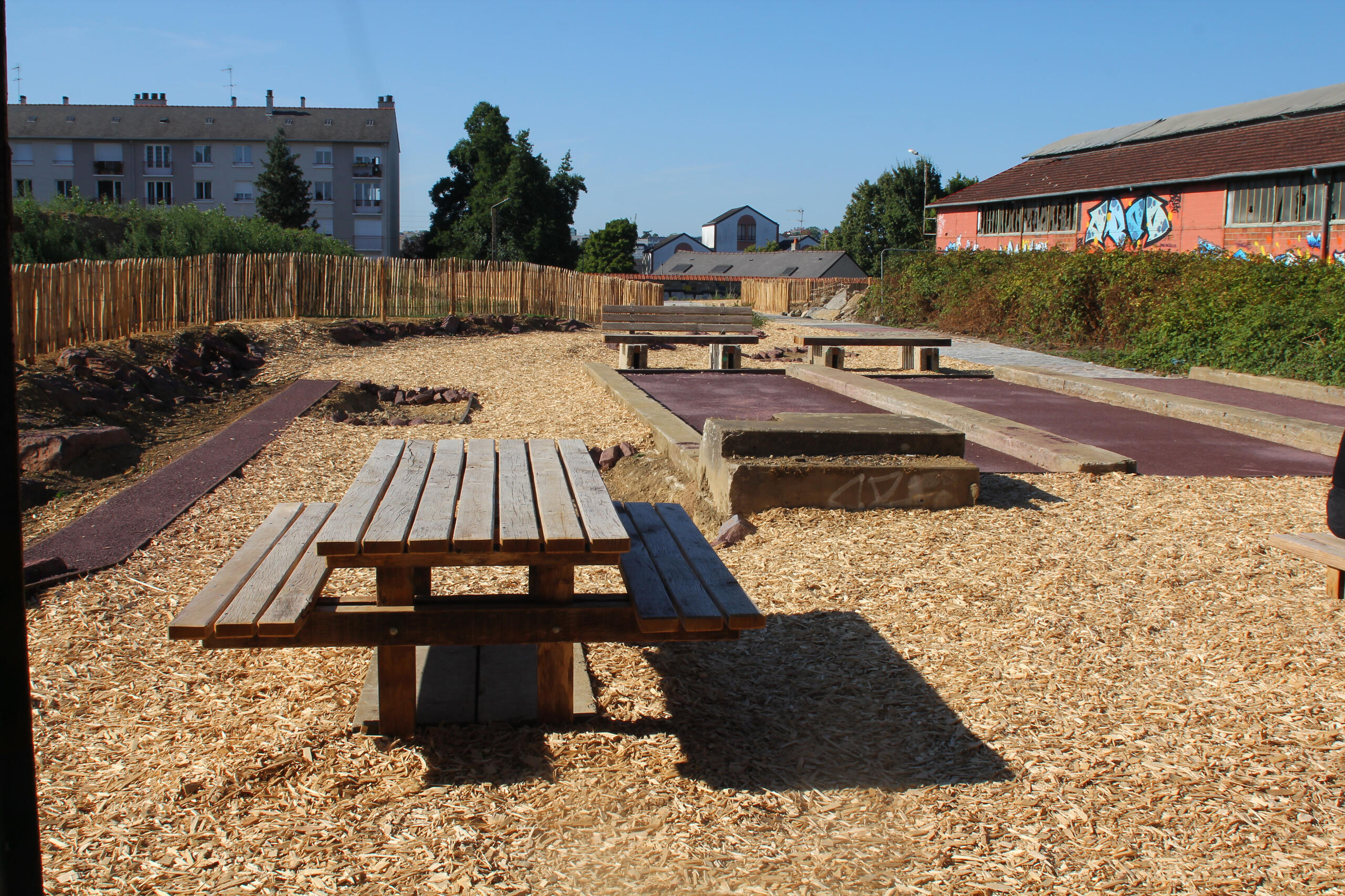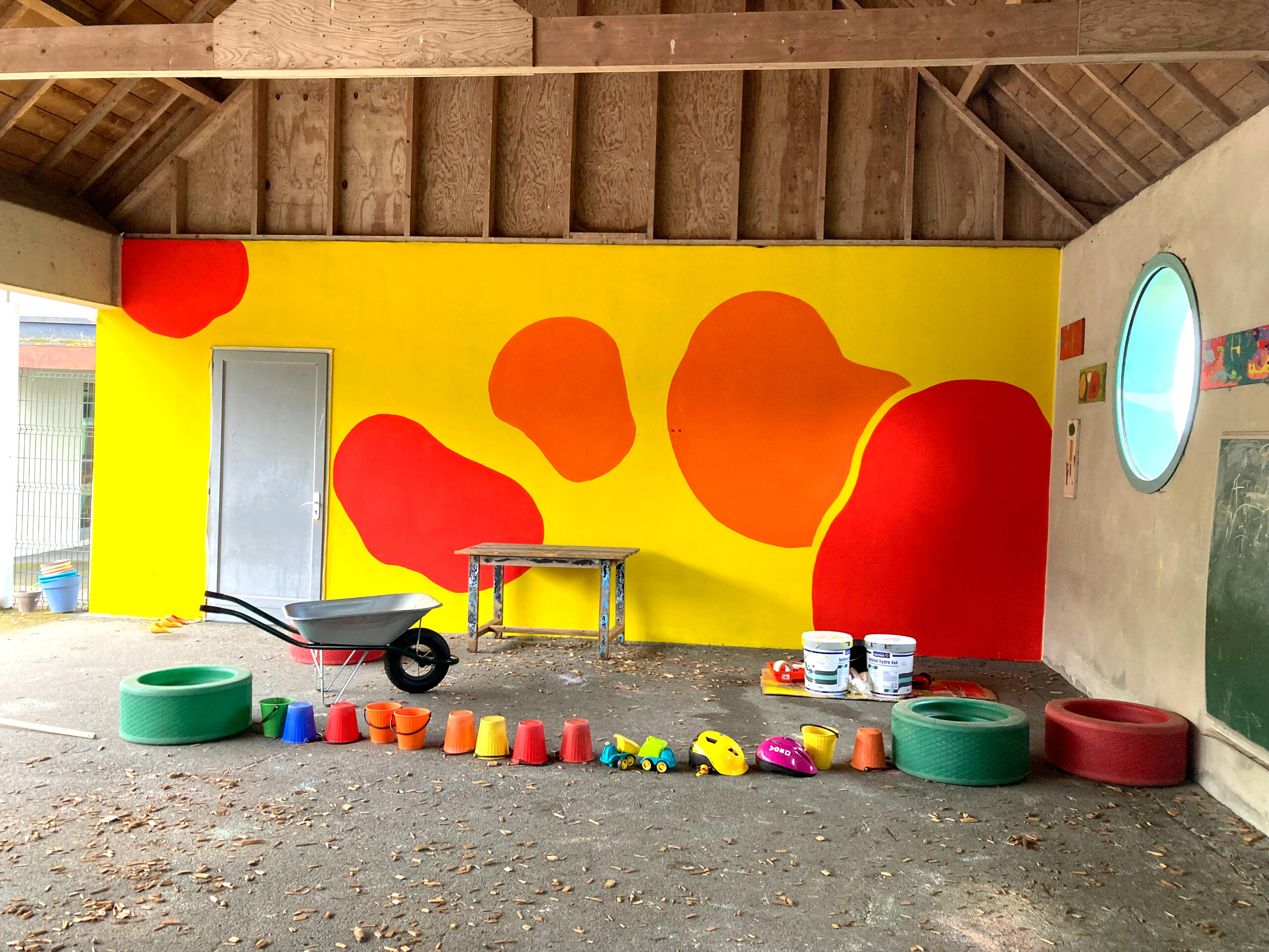 Ces aménagements ont été réalisés à l’occasion de cinq chantiers ouverts, entre décembre 2020 et juin 2021, en collaboration avec les services de la ville, les habitant.e.s et les associations de la ville.Fresque réalisée en collaboration avec l'artiste Valérian Henry.