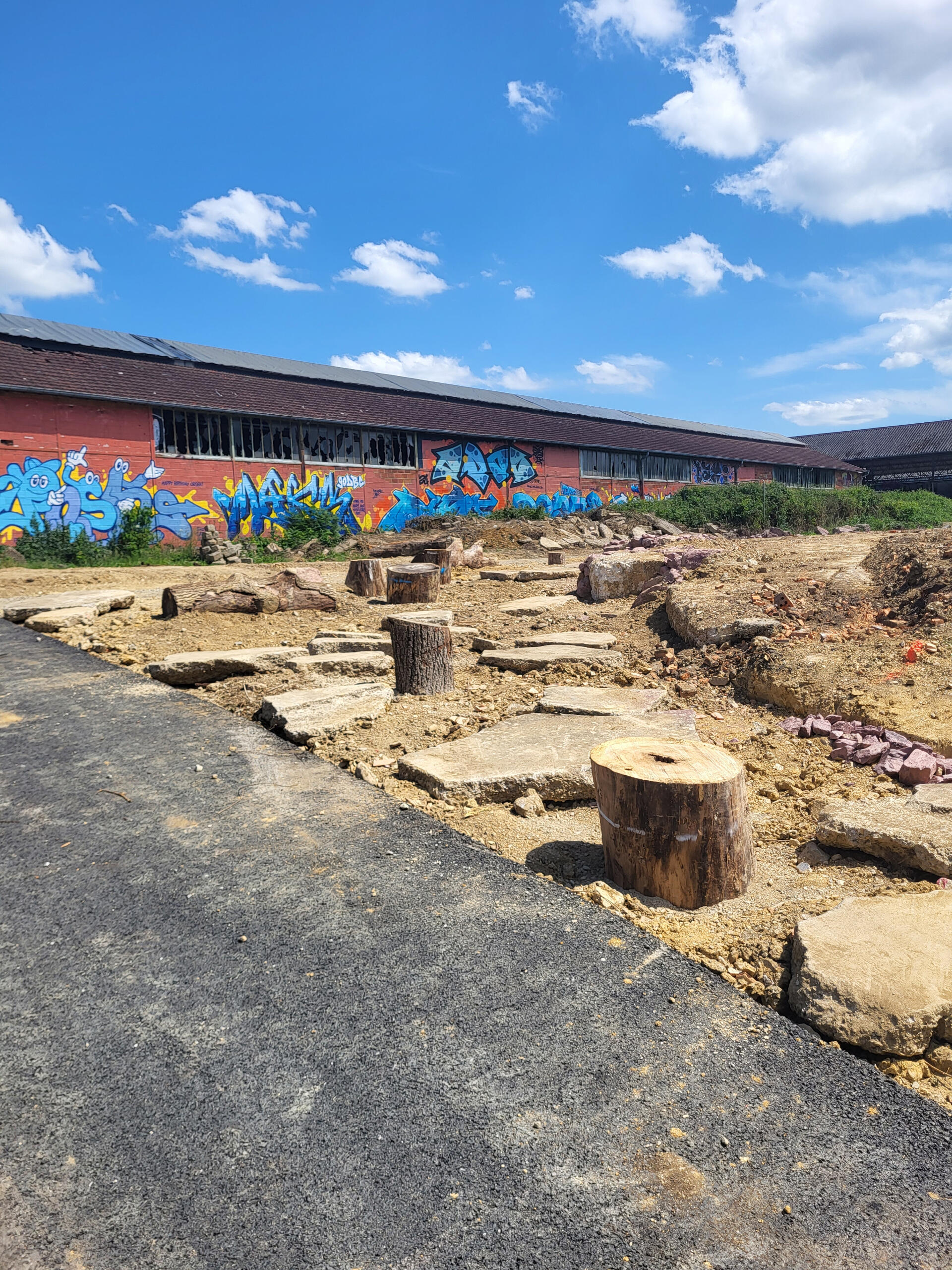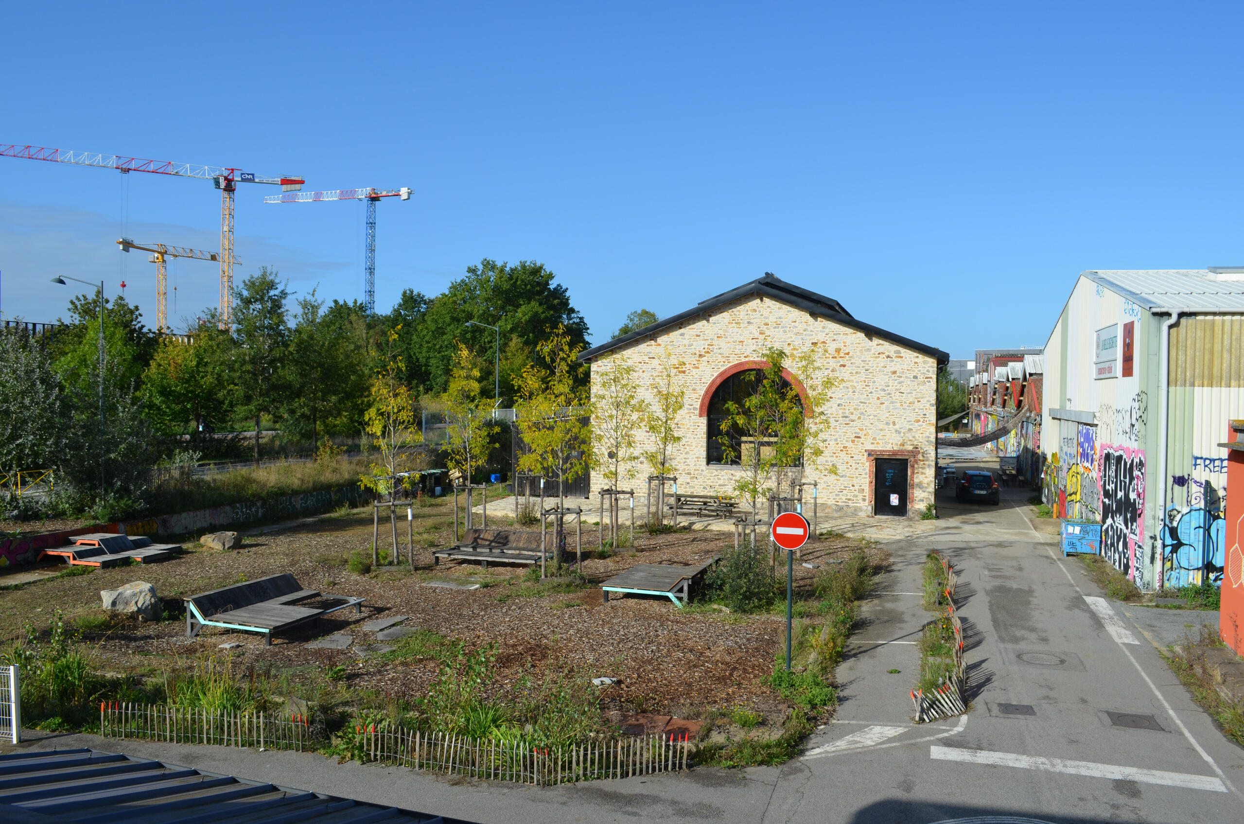 Depuis nos interventions, le bâtiment de la chaufferie qui accueille désormais le bar Grabuge a été réhabilité et la circulation a été fluidifiée grâce à un projet de décroutage du sol et de plantations, mené par notre équipe. La place est de plus en plus vivante et agréable !