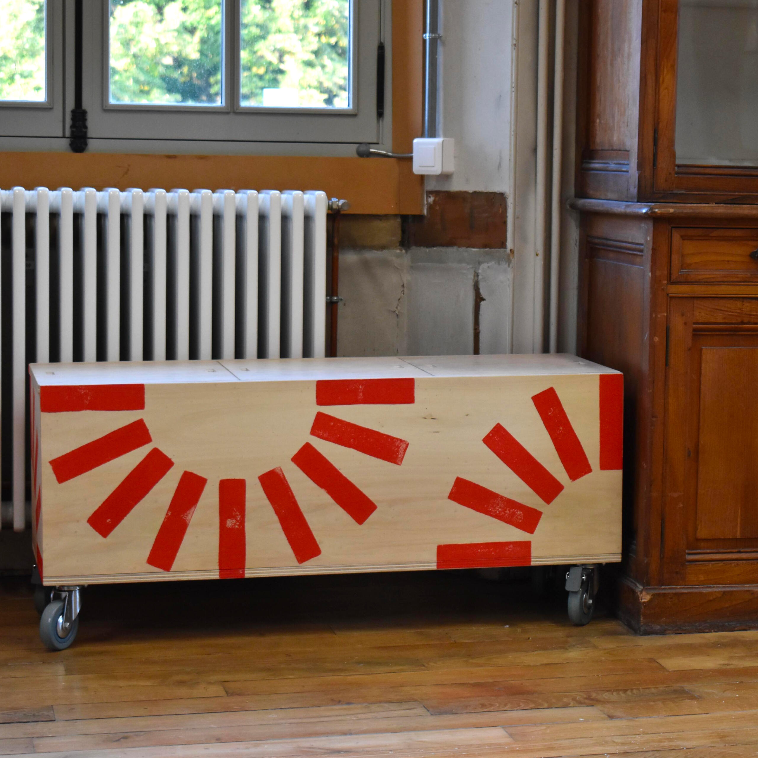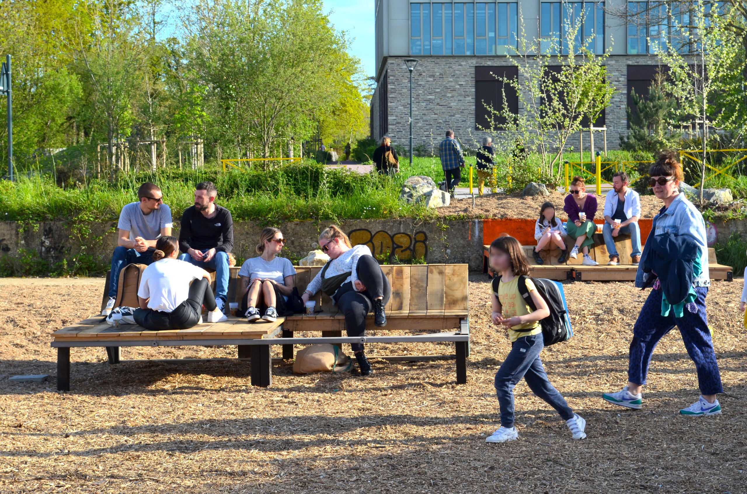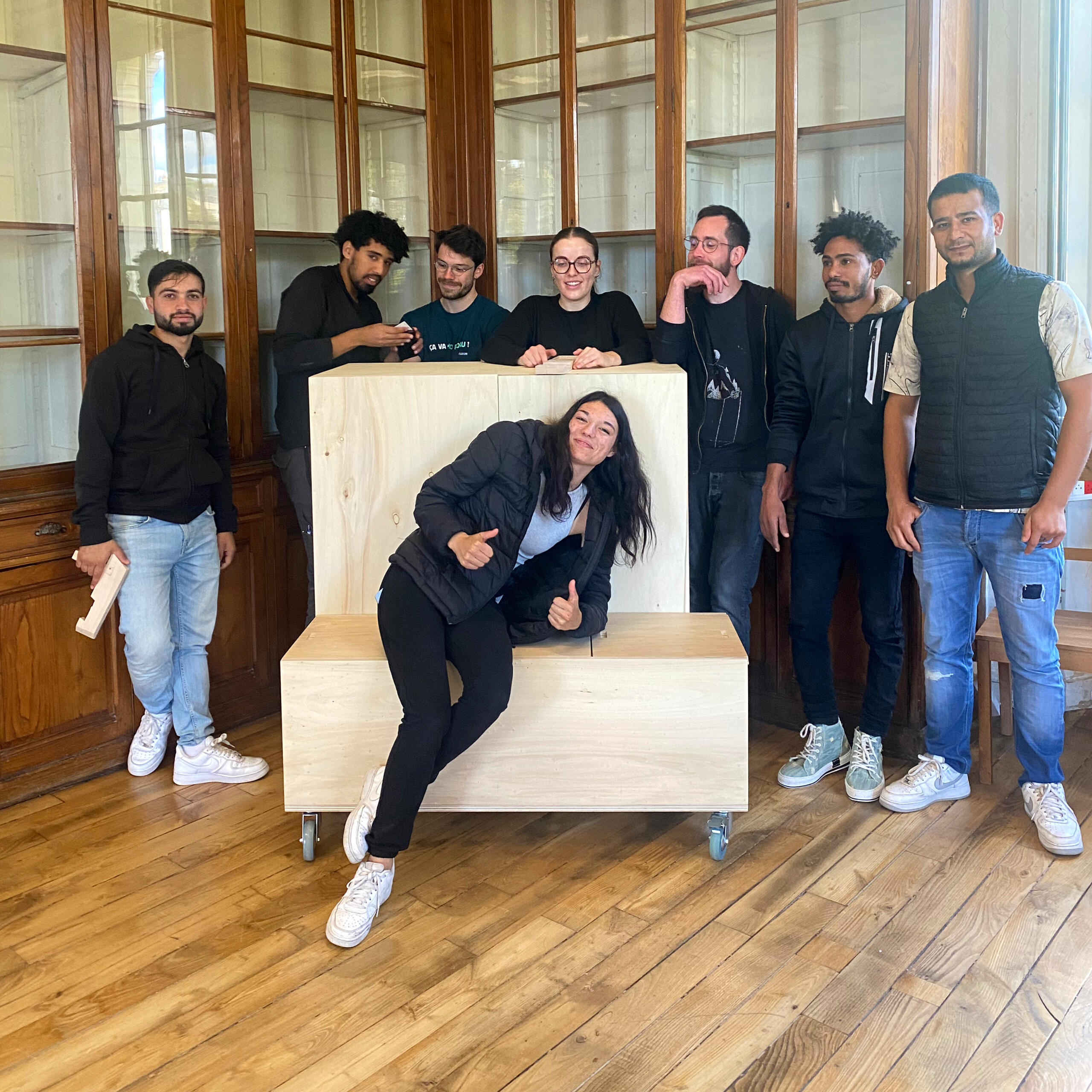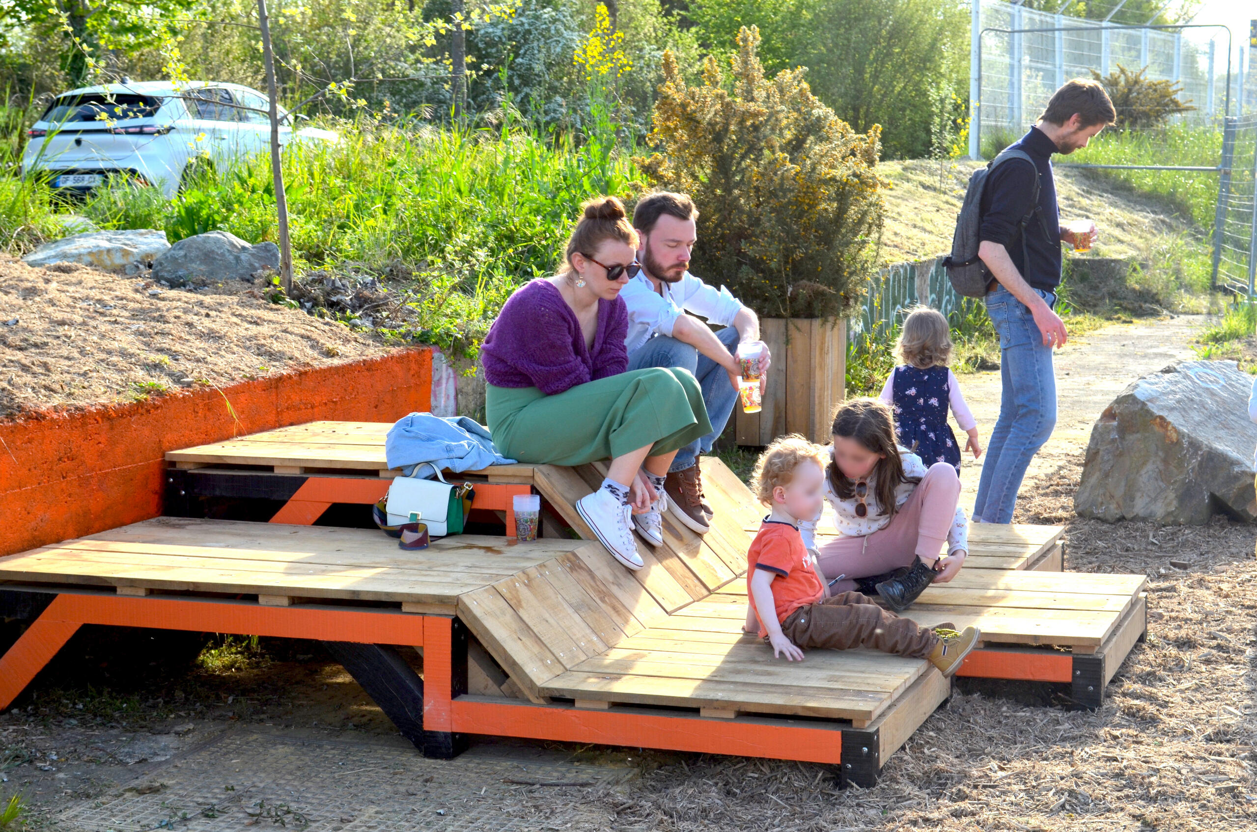 Dans le cadre de l’opération conduite par Territoires Publics qui s’inscrit dans l’aménagement transitoire de la future Rambla de la ZAC Baud-Chardonnet, les Animé.e.s et Les Saprophytes ont été mobilisé.es pour une nouvelle collaboration.Lors de la concertation réalisée en amont avec les habitant.e.s de ce quartier en mutation, le besoin de mobiliers urbains d’assises et d’affichages a été relevé. Entre assises, plateformes, structures ludiques, surfaces d’exposition, les mobiliers de la Rambla du quartier ont été fabriqués en chantier ouvert en mars 2022.Ce chantier a été l’occasion de collaborer avec les étudiants de l’Institut du Design et de l’Image de Rennes dans la réalisation des modules.L’inauguration des modules a permis de découvrir le travail de la photographe Anne-Cécile ESTEVE qui a installé son exposition photo sur les modules fabriqués pendant le chantier.