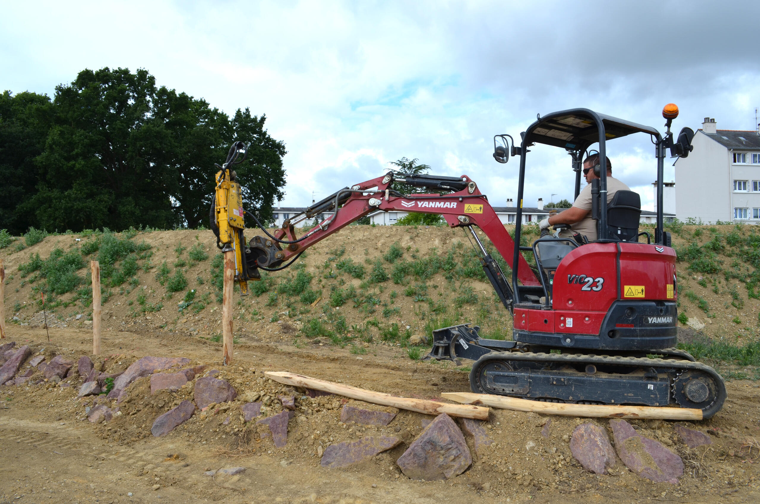 Enfin, une équipe réalisait le nivelage du terrain pour installer la structure sur un terrain de niveau.