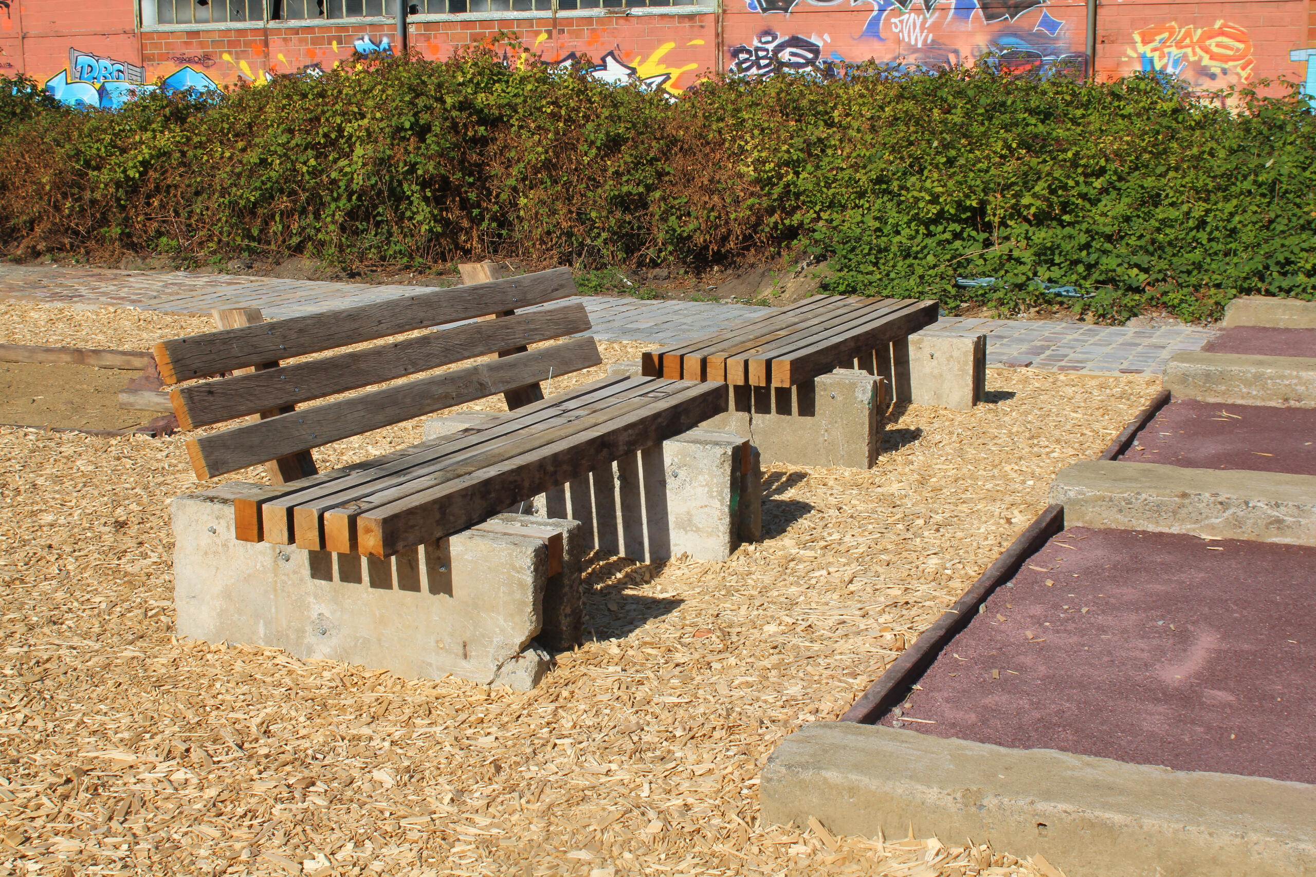 Retour sur le chantier de la place Claza Zetkin, aux Ateliers du Vent : construction d'une banquette en bois et d'un barbecue en terre avec l'association T.E.R.R.E - communauté Emmaüs