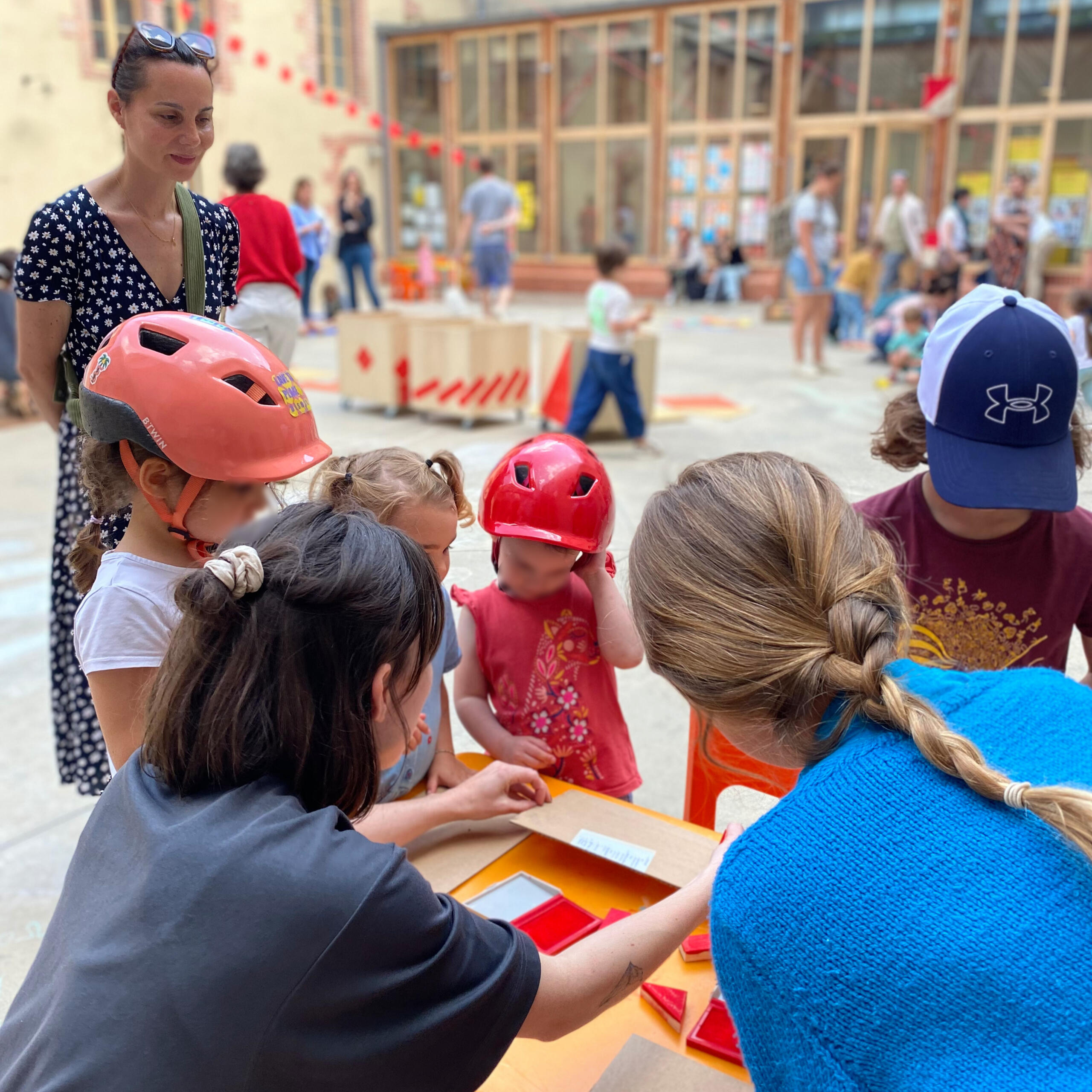 Une fois les arbres plantés et les mobiliers installés, il est temps d'inaugurer la place fraichement réaménagée. Au programme : inauguration des mobiliers et découverte de la fresque. Des ateliers de plantations au pied des arbres sont menés avec les enfants de l’École Simone Veil, puis avec les participant·es de l'événement.L'ambiançomètre est à nouveau utilisé pour mesurer l'ambiance actuelle de la place et évaluer l'évolution des ressentis depuis l'activation de l'outil avant travaux. Les résultats sont très positifs et correspondent aux attentes des participant.es en avril 2023.Merci à Grabuge pour l'animation buvette lors de l'événement !