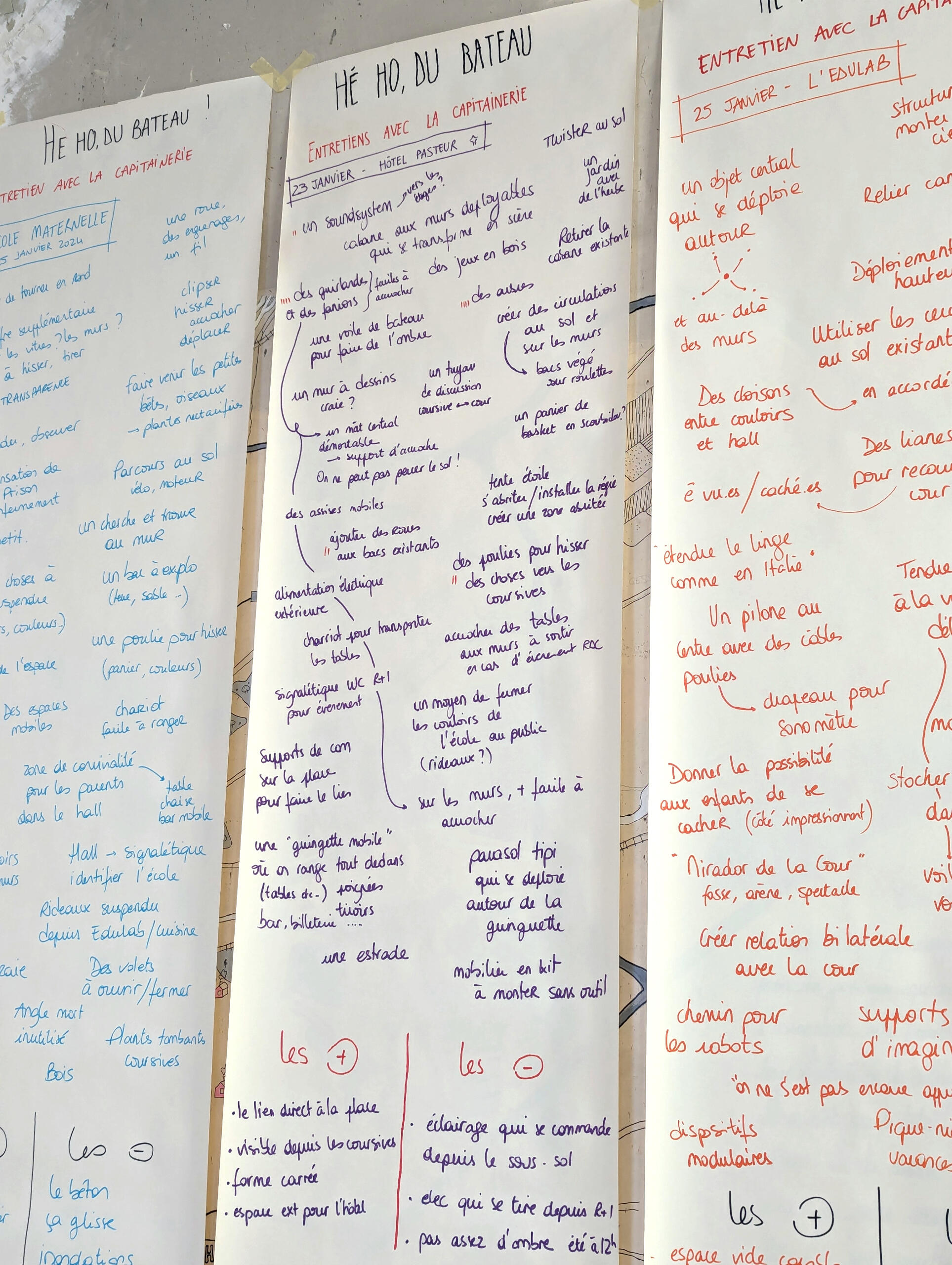 En parallèle, nous mobilisons l’outil de l’ambiançomètre, imaginé par Lost&Find lors de l’édition de 2021 des RIM (rencontres inter-mondiales des manières de faire en architecture et en urbanisme), pour évaluer individuellement et collectivement l’ambiance du lieu, en l'état actuel et de manière prospective.