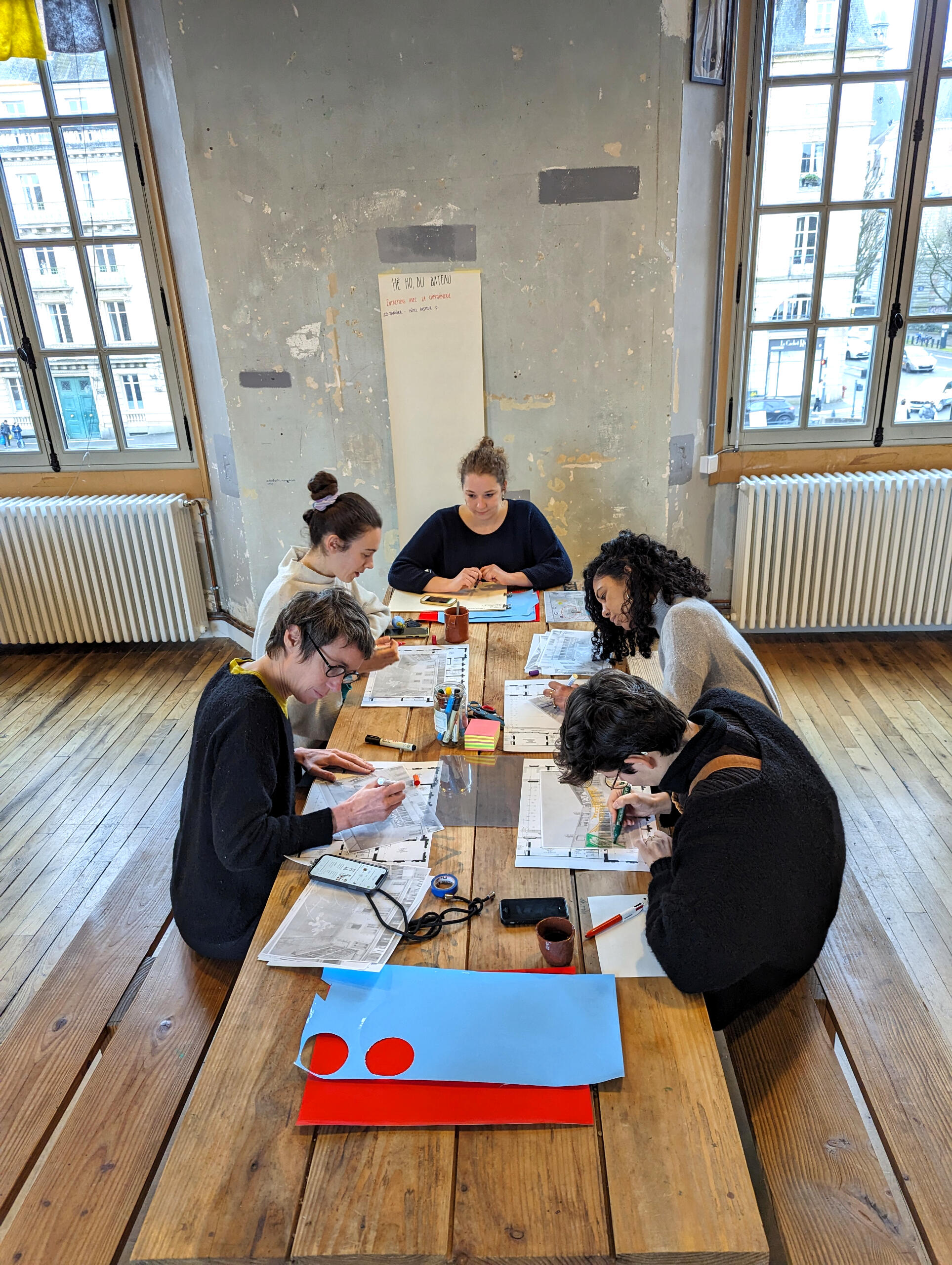 À cette occasion, les Animé.e.s imaginent une société post-effondrement et des manières de faire commun. Ils poursuivent une réflexion sur la matière, les matériaux et les techniques de construction autant que sur les modes d’habiter et les relations avec les autres habitant.e.s de l’environnement, humains et non-humains, vivants et non-vivants.Pendant les deux jours de l'évènement, ils invitent à participer à la cartographie des mondes en présence et mettent au point des outils d’intelligence collective pour aider et documenter les interactions de ces mondes.Cet évènement s'est conclu par une restitution publique aux Champs Libres, à Rennes.