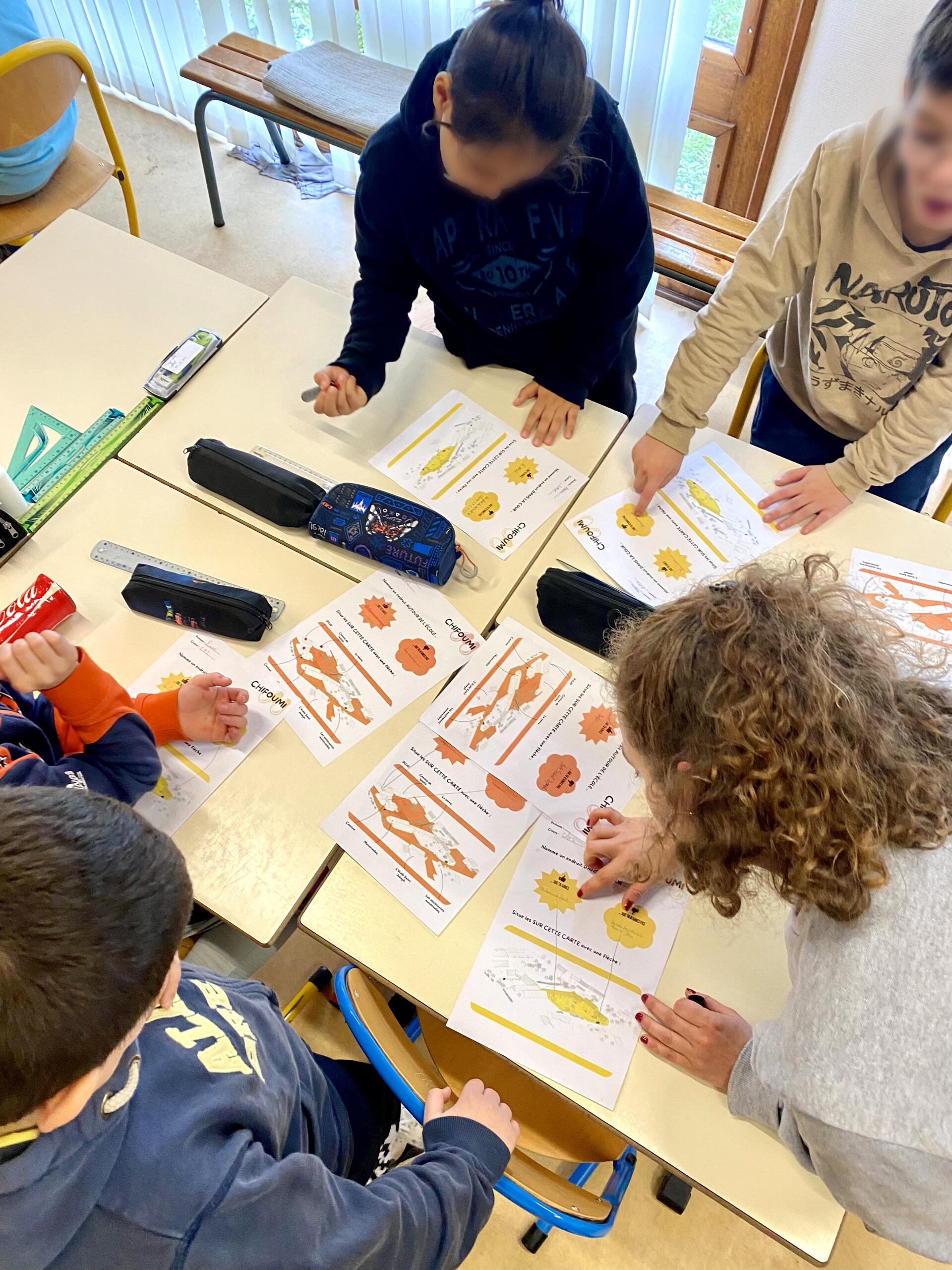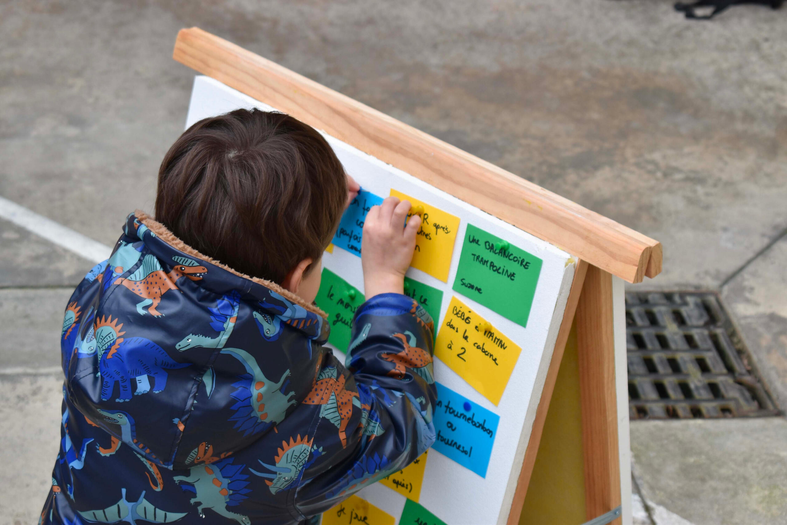 A travers différents critères les élèves ont pu croiser leurs regards et s'interroger sur la perméabilité du sol, l'ambiance, l'ensoleillement, la qualité de l'espace, la présence (ou non- du vivant.Ensuite, pour décrypter les problématiques présentes dans la cour et comprendre son occupation, nous avons organisé un 1,2,3 soleil des usages : un inventaire collectif des usages existants dans la cour et une mise en situation dans la cour pour localiser les usages.