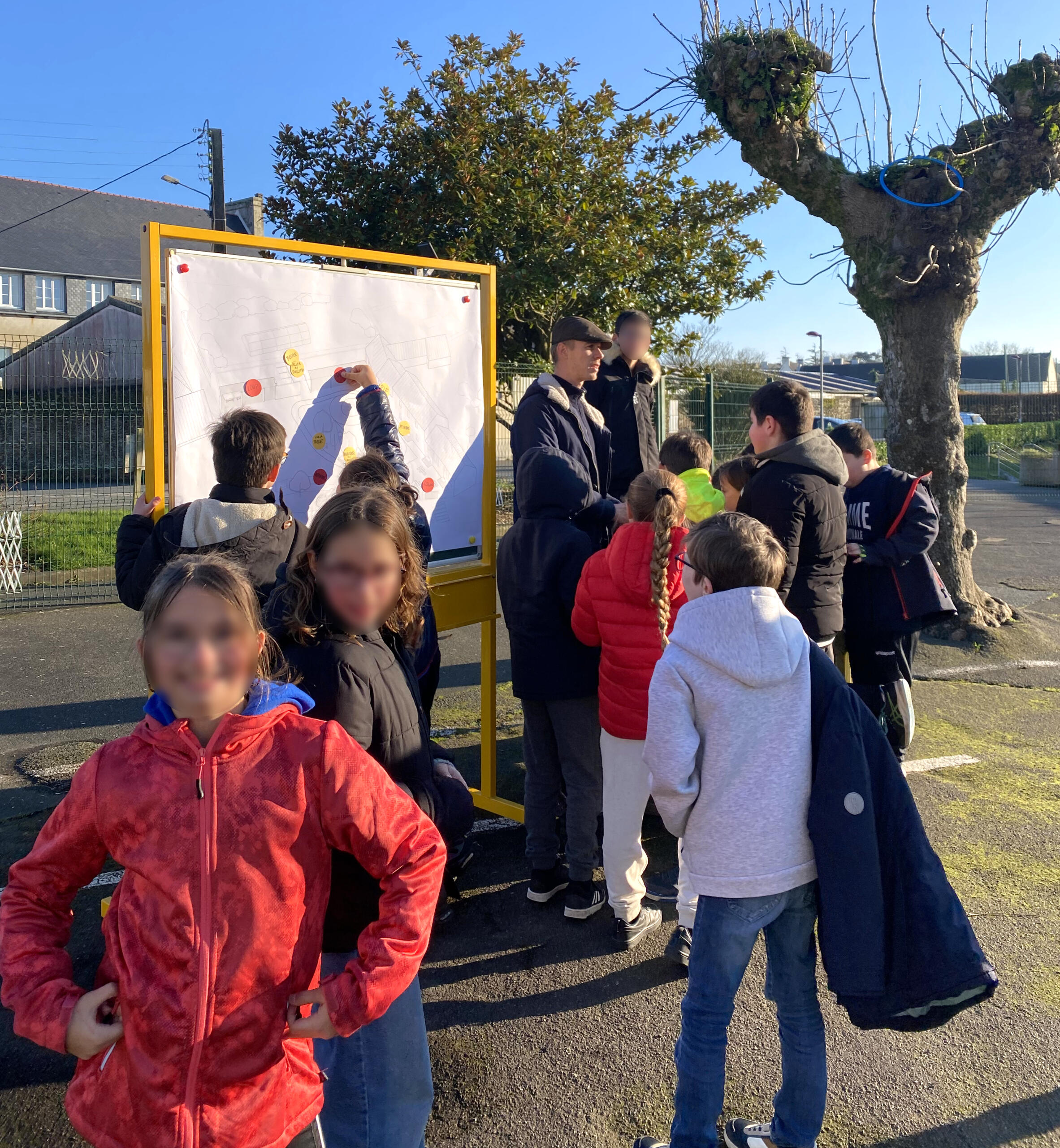 Tour à tour explorateur·rices, jardinier·eres et charpentier·ere, les enfants s’encapacitent pour écrire un projet commun.De décembre 2024 à juin 2025, nous avons proposé une méthodologie sous forme de résidences pour embarquer dans une grande aventure commune de transformation des cours des maternelles et des élémentaires de Lampaul-Guimiliau.