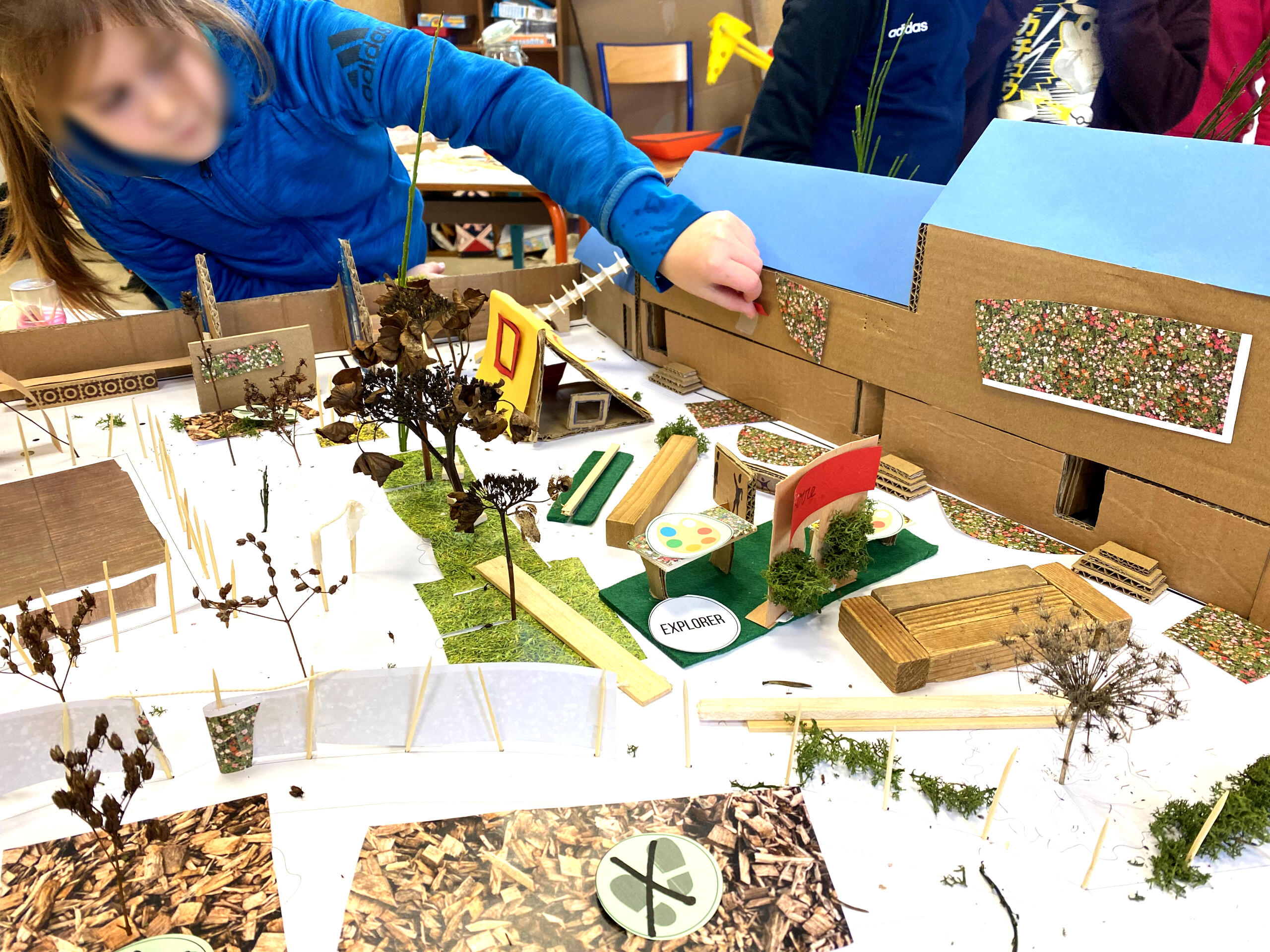 Autour du dessin sur photos pour les plus petit·es et d'une maquette géante pour les plus grand·es, chacun·e a pu exprimer ses idées et envies pour la transformation des cours.Nous avons profiter de cette résidence pour planter les premiers semis et bulbes des futures cours :