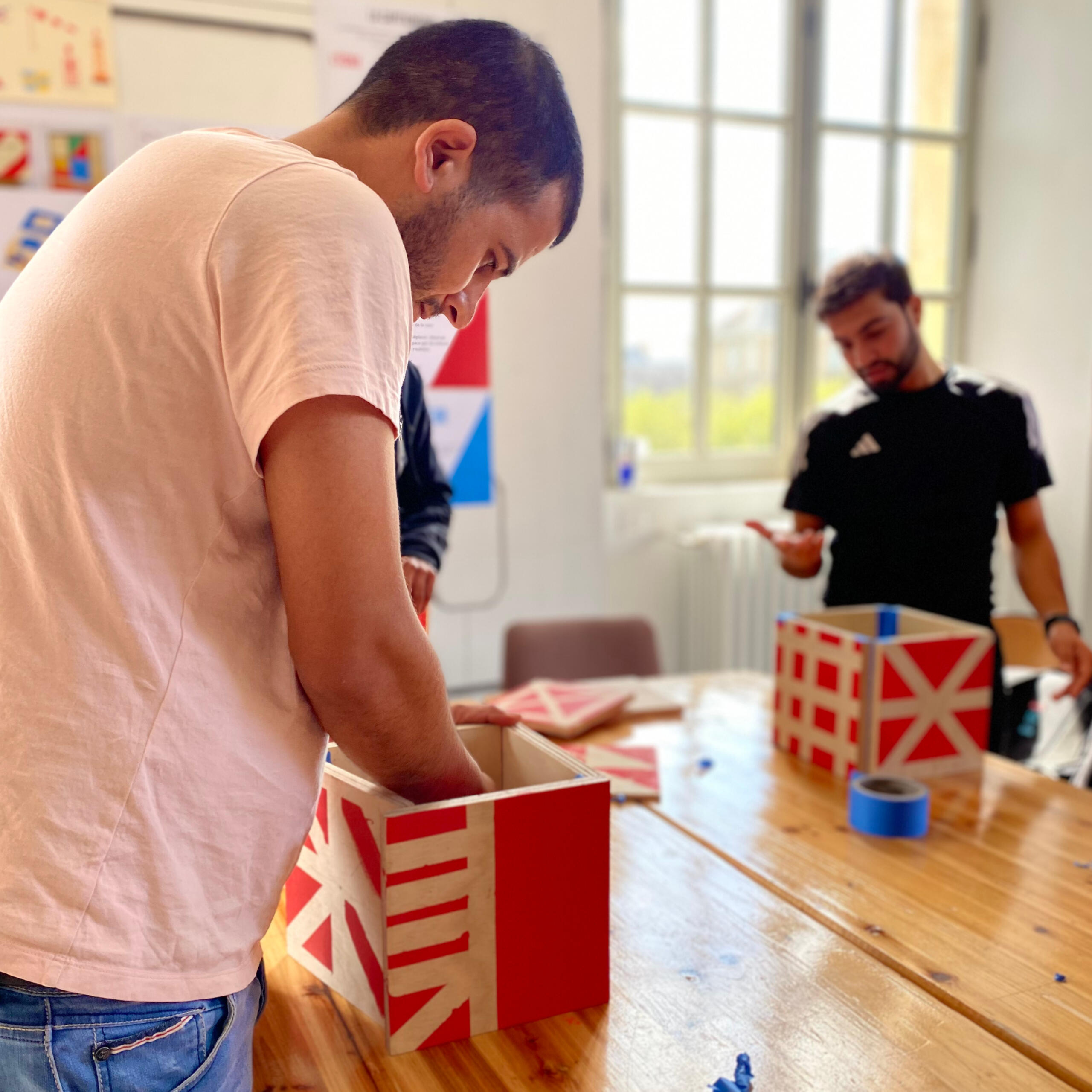 Comment changer de lieu en maintenant son action dans le quartier ?Voilà la question que se pose la Maison des Squares. Nous avons donc animé une journée de discussion collective entre les membres de l’association pour l’accompagner dans sa réflexion. En créant un jeu de société où les post-it se transforment en briques, et où chaque équipe a un super pouvoir, les langues se délient et surgissent de nouvelles idées, envies, pour le futur du quartier.Après avoir construit symboliquement un bâtiment en briques avec les valeurs de l’association, l’heure est venue de le déconstruire pour en fabriquer un nouveau, avec les valeurs que l’association souhaitent conserver et emmener avec elle dans ses nouveaux locaux.
